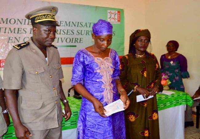 La Ministre Mariatou Koné a réitéré l’engagement du président de la République, à poursuivre le processus de réparation tant qu’il y aura des victimes non encore indemnisées: «Là où il y aura des victimes sur l’ensemble du pays, nous irons leur apporter la compassion de l’Etat».