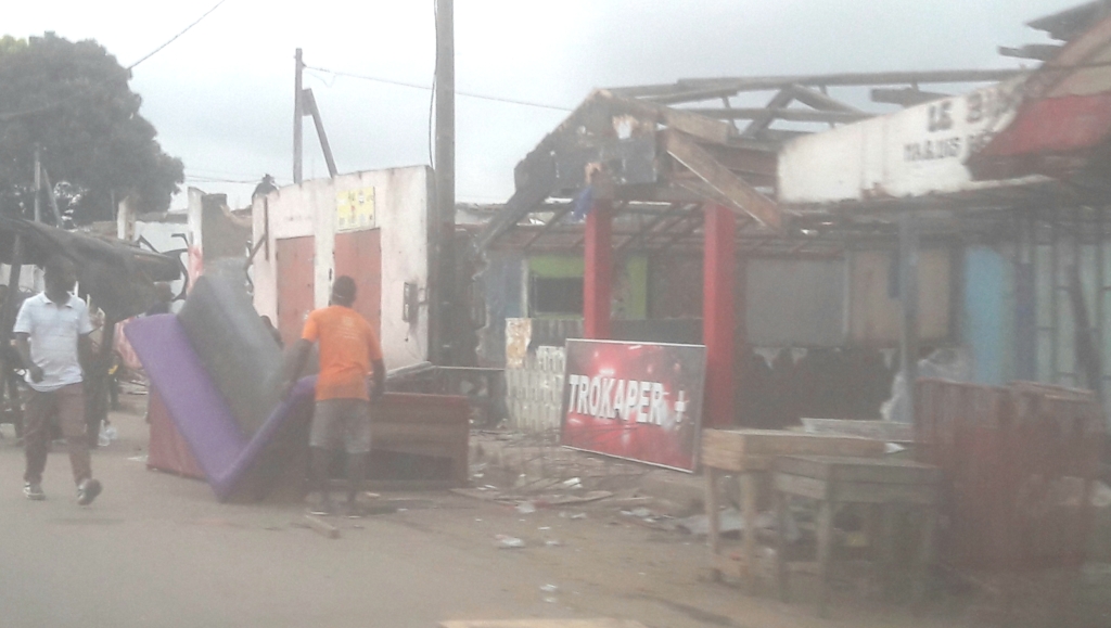 En effet, ce jeudi 19 septembre 2019, une vingtaine de maquis, et des magasins de bâches et chaises ont été rasés par les bulldozers.
