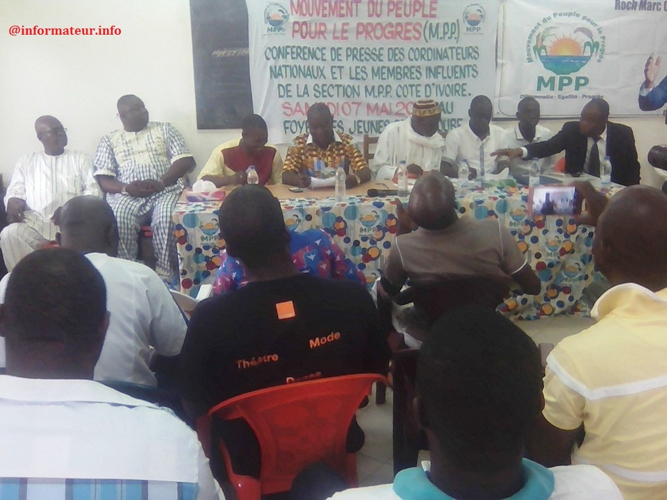 Informateur.info- Ce samedi 07 mai 2016 marque un tournant dans la vie du parti de Roch Marc Christian Kaboré en Côte d’Ivoire. Au cours d’une conférence de presse qui s’est tenue, au foyer des jeunes dans la commune d’Attécoubé, les coordonnateurs nationaux et les membres influents du Mouvement du Peuple pour le Progrès ont clairement affiché leur volonté de ne plus faire chemin avec Sankara Inoussa, le Secrétaire Général de la section en Côte d’Ivoire. Retraçant l’avènement du MPP-CI, le doyen d’âge, El Hadj Traoré Daouda dira ceci : « C’est dans l’euphorie que nous, membre de la communauté Burkinabè en Côte d’Ivoire avions suivi de près et avec intérêt la création du Mouvement du Peuple pour le Progrès (MPP). Un parti qui reflète nos aspirations et dont nous partageons les idéaux. Nous avions donc très vite saisi la perche que nous tendait ce parti à travers sa création. C’est ainsi, qu’une délégation dirigée par la quatrième vice-présidente, chargée des Burkinabè de l’extérieur et composée d’éminents responsables tel que le Secrétaire Général du parti, venue de Ouagadougou, a installé officiellement la section Côte d’Ivoire du parti le 10 Mai 2014 lors d’une Assemblée Générale à la bourse de travail de Treichville » Et de poursuivre : « Cette séance dirigée par M. Clément SAWADOGO avait arrêtée ce qui suit : la création de douze coordinations, à savoir, une coordination par commune dans le district d’Abidjan, la désignation des coordinateurs-communes par chaque délégation communale présente, la désignation d’un coordinateur général provisoire, pour la section Côte d’ivoire »