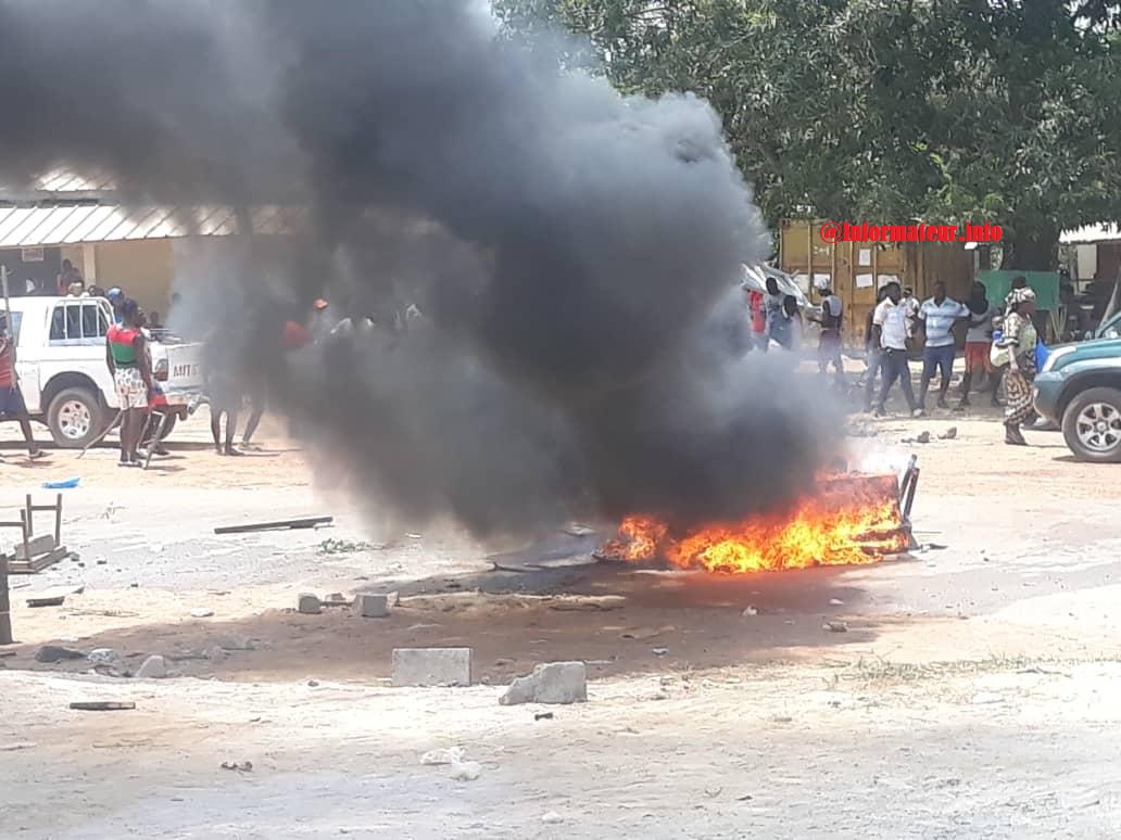 ‘@Informateur.info- A l’instar de plusieurs localités de la Côte d’Ivoire, la commune de Songon est entrée en ébullition, ce jeudi matin. Des manifestants ont incendié des pneus et dressé des barricades sur la route à la hauteur des villages Adiapoto 1 et 2 pour protester contre la déclaration de candidature du président Alassane Ouattara.