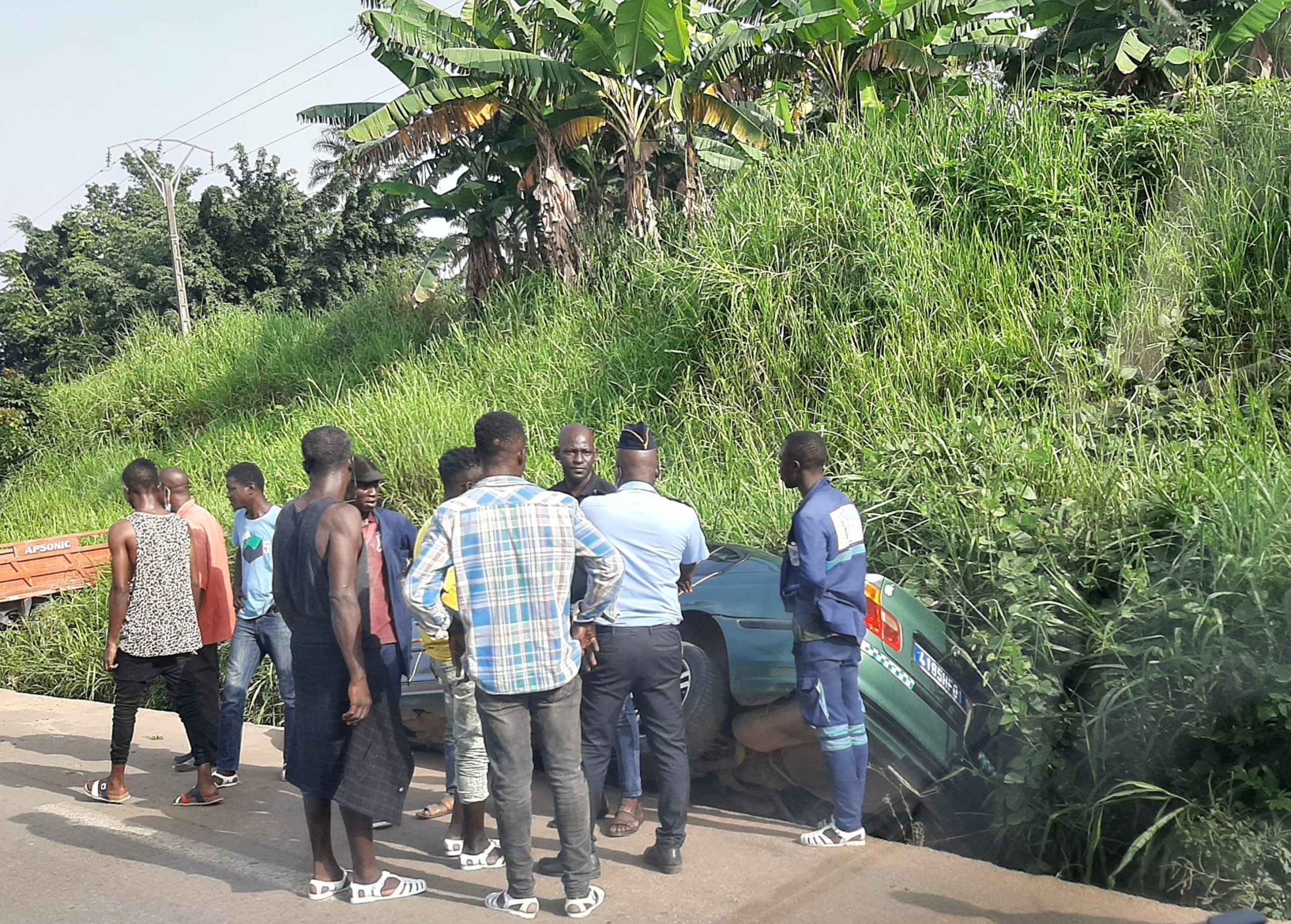 ‘@Informateur.info- Un véhicule de marque Toyota verte s’est retrouvé avec ses occupants dans un caniveau au niveau de la descente entre le restaurant chez Zongo et la pharmacie de Pk17 dans le sens Dabou- Abidjan.