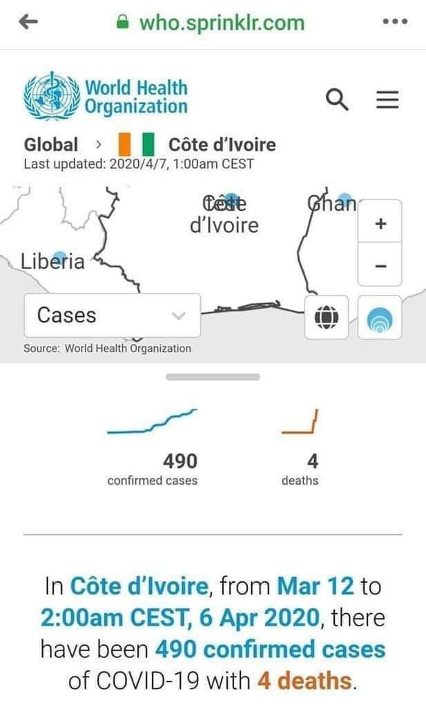 « L’Organisation mondiale de la Santé regrette cet état de fait et les corrections sont en cours. A la date du 7 avril 2020 à 6H GMT, les cas enregistrés étaient comme suit : 323 cas confirmés, 3 décès et 41 guéris, tel que publié par le Gouvernement de la Côte d’Ivoire », rectifie l’Organisation, réitérant « son engagement aux côtés du Gouvernement dans la réponse à cette crise ».