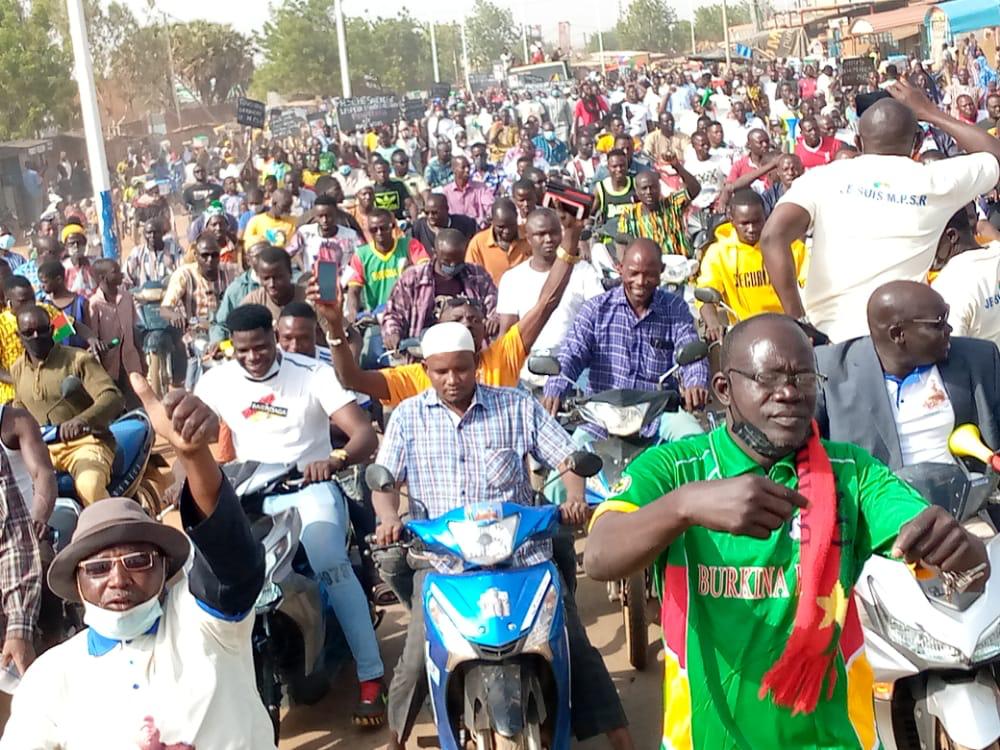 @Informateur- Des Burkinabè sont sortis nombreux, ce samedi 29 janvier 2022 pour soutenir, à travers des marches, le nouvel homme fort du Burkina Faso et le Mouvement pour la Sauvegarde et la Restauration (MPSR). A Pouytenga, les populations n’ont pas boudé leur plaisir. Pari réussi pour le coordonnateur de la marche, Amado Baguian. Ci-dessous quelques images de la marche.