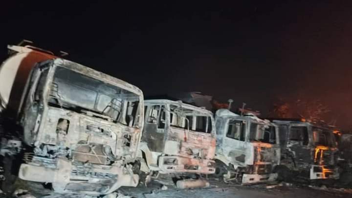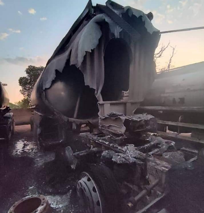 ‘@Informateur.info- Au moins une demi-douzaine de camions citernes ont été calcinés dans un incendie au Burkina Faso dans la nuit du samedi à dimanche sur la route reliant Ouagadougou à la capitale économique Bobo-Dioulasso.