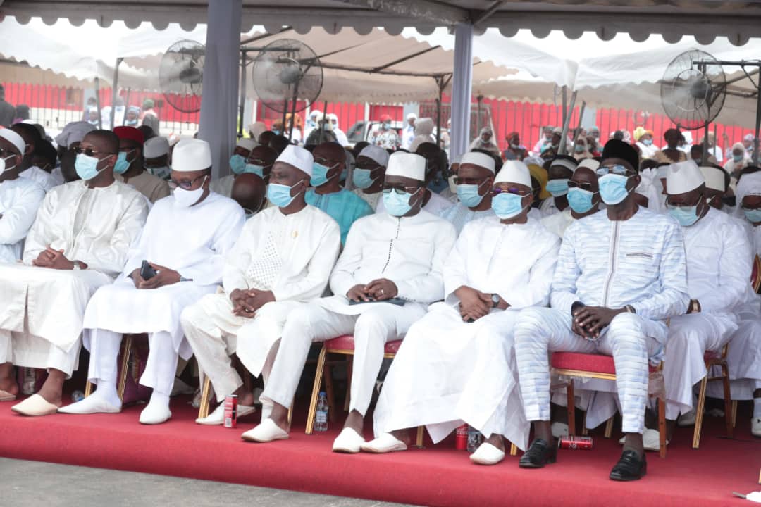 Pour cette dernière étape des obsèques d’ Hamed Bakayoko, l’Étoile d’État, prématurément éteinte, le président Alassane Ouattara et son épouse Dominique Ouattara, les membres du gouvernement qu’il dirigeait et les forces vives de la nation, ont honoré de leur présence l’ultime cérémonie musulmane de sacrifice de 7è jour constituée de prières et dons à la famille éplorée.