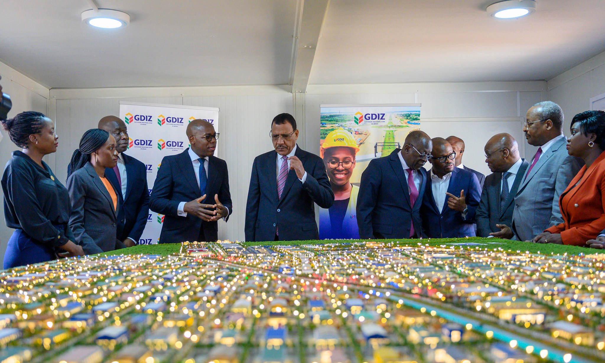 Avant son départ de Cotonou, le Chef de l’État a visité mardi matin le complexe de la Zone industrielle de Glo-Djigbé, à une quarantaine de kilomètres de Cotonou. Conçue comme un accélérateur de transformation, la zone industrielle intégrée de Glo-Djigbé est étendue sur 1640 hectares et axée sur la création de florissantes chaînes de valeur allant de l’approvisionnement en matières premières à la fabrication et à l’exportation de produits finis. Le Président Bazoum a reçu d’amples explications sur le concept qui devrait inspirer les pôles agro-industriels figurant en bonne place dans son programme.