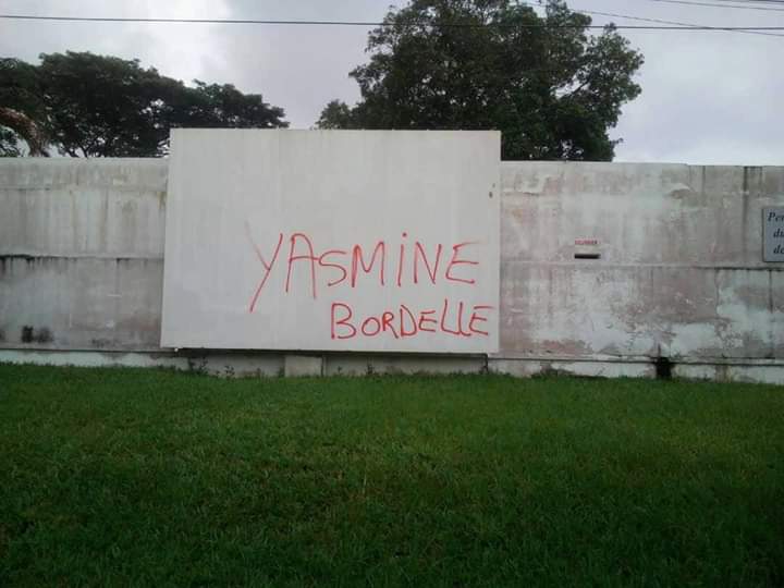 « Pute, bordelle… », peut-on voir sur la permanence. Pour l’heure, Yasmina Ouegnin n’a pas réagi à ces actes.