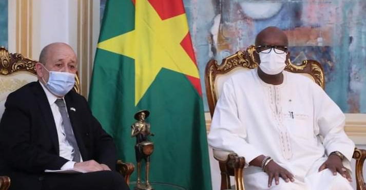 ‘@Informateur.info- «Nous voulons dire aux autorités burkinabè notre amitié, notre affection, et notre volonté de continuer à agir ensemble contre ce poison qui est le terrorisme». Ce sont les propos du ministre français de l’Europe et des Affaires étrangères, Jean-Yves Le Drian qui a été reçu, ce vendredi au palais de Kosyam, par le président du Faso.