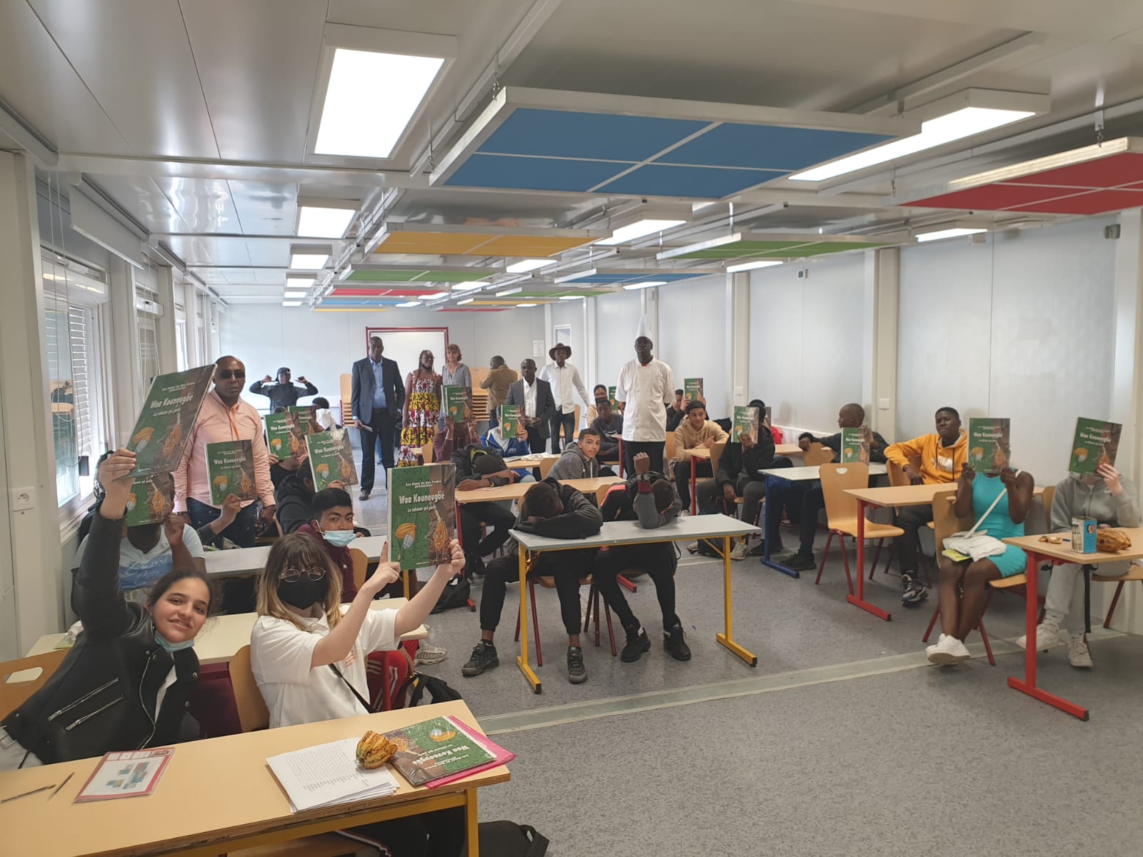 Dans un cours magistral, M. Beugré a expliqué à la cinquantaine d’élèves de la la classe de 3ème du collège Alfred Sisley le processus du cacao avec à l’appui une projection de film . S’en est suivi un exercice de puzzle duquel les apprenants devaient reconstituer le processus. Cet exercice de jeu mêlée sur le cacao visait à jauger le niveau d’assimilation des élèves. Les meilleurs ont été récompensés par des livres de bandes dessinées et des tee-shirts.