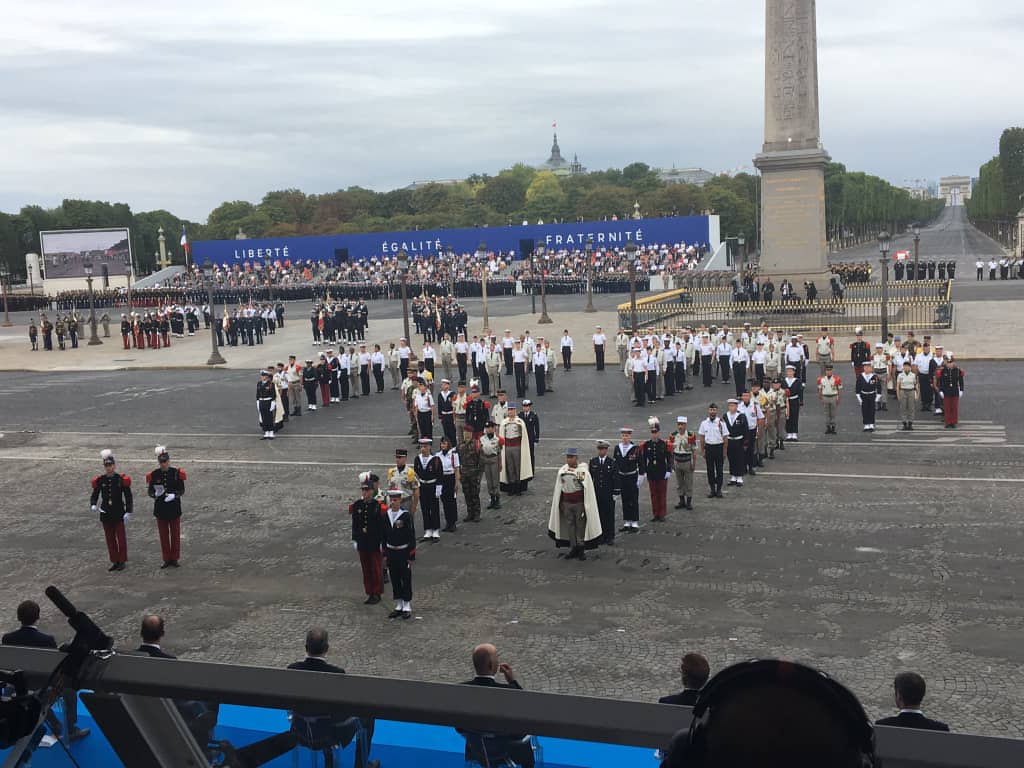 Pour le chef de l’État français, c’est un 14-Juillet « un peu particulier » qui consacre « la fierté d’être Français, dans lequel nous célébrons nos armées », précisant que, « lors de ce 14-Juillet, nos armées ont accepté d’offrir un peu la vedette aux soignants, à ces femmes et ces hommes qui pendant des mois, comme ils le font tout au long de l’année, mais cette fois-ci tout particulièrement, nous ont protégés, se sont battus pour nous », a-t-il introduit l’interview avec Léa Salamé et Gilles Bouleau.