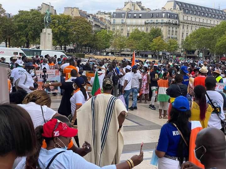 Des centaines de manifestants ont pris d’assaut, samedi, la place Trocadéro à Paris pour dénoncer le 3e mandat du président du RHDP. Parmi eux, des membres des formations politiques ivoiriennes représentées en France, notamment le Front Populaire Ivoirien (FPI) et Générations et Peuples Solidaires (GPS).