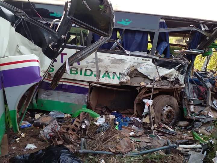 ‘@Informateur- Un accident de la circulation impliquant deux cars de la compagnie SBTA a fait de nombreuses victimes, ce mercredi 22 décembre 2021. On dénombre six morts et de nombreux blessés dans l’accident qui s’est produit entre les villages de Galébré et de Libiyo.