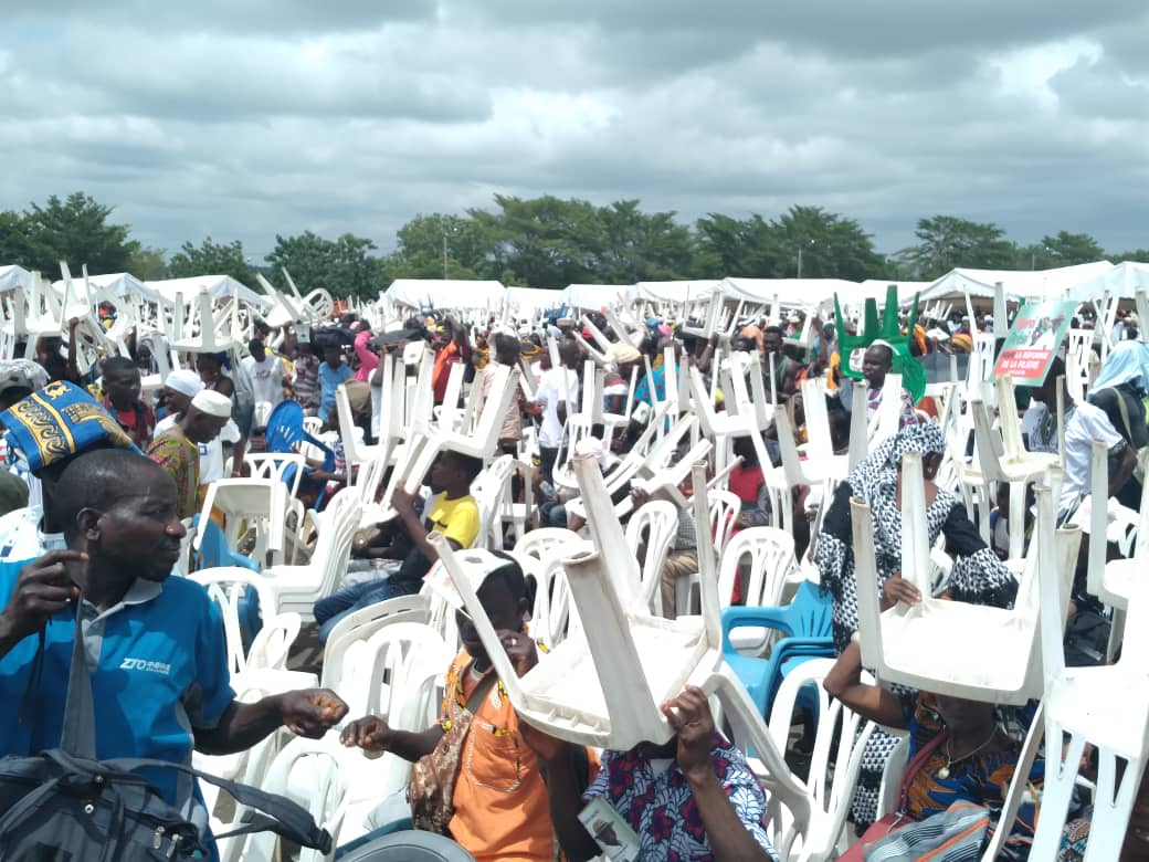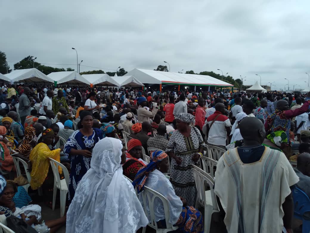Dans la foule les murmures sont sourdes mais palpables. Les ministres d’Etat, Adjoumani Kobenan et Tené Birahima, parrain et Co-parrain de la cérémonie, pour rappel, devraient être arrivés sur le site depuis 10heures.