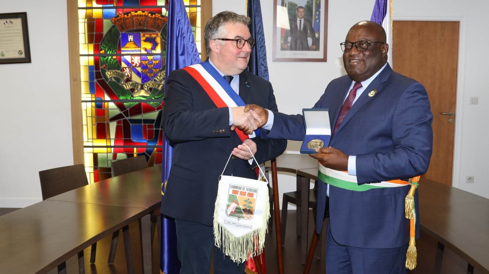 ‘@Informateur- La commune de Tiébissou situé à 285 km d’Abidjan au Centre de la Côte d’Ivoire est sur le point d’être jumelée avec la commune de Lamotte-Beuvron située dans le canton de La Sologne du département Loir-et-Cher en France. En effet, le maire Germain N’Dri Koffi et Pascal Bioulac ont paraphé, lundi 19 décembre 2022, dans la commune française une feuille de route de la mise en œuvre du jumelage de leur commune respective dans une ambiance conviviale et prometteuse en termes de partenariat.