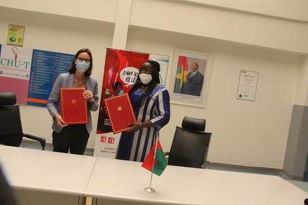 ‘@Informateur.info- Le ministre burkinabé la Santé, Pr Léonie Claudine Lougué-Sorgho et la Secrétaire d’État française aux Affaires européennes, Amélie de Montchalin, ont signé, lundi, une convention bilatérale d’acceptation de matériel médical dans les locaux du centre hospitalier universitaire de Tengandogo à Ouagadougou, en présence du commissaire aux Affaires européennes, Jutta Urpilainen.