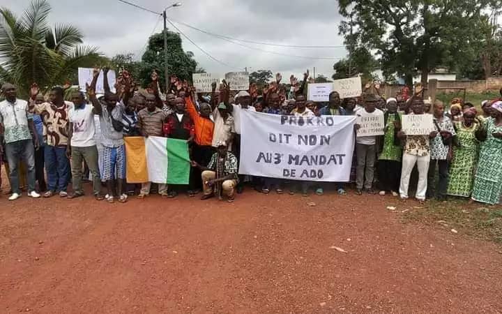 C’est le cas à Prikro (302 km au centre-est) dans la Région d’Iffou où quelques centaines d’hommes, femmes et jeunes ont envahi, ce vendredi matin, les principales artères de la ville pour, affirment-t-ils, dire « Non à un 3è mandat » du chef de l’État ivoirien après deux autres consécutifs.