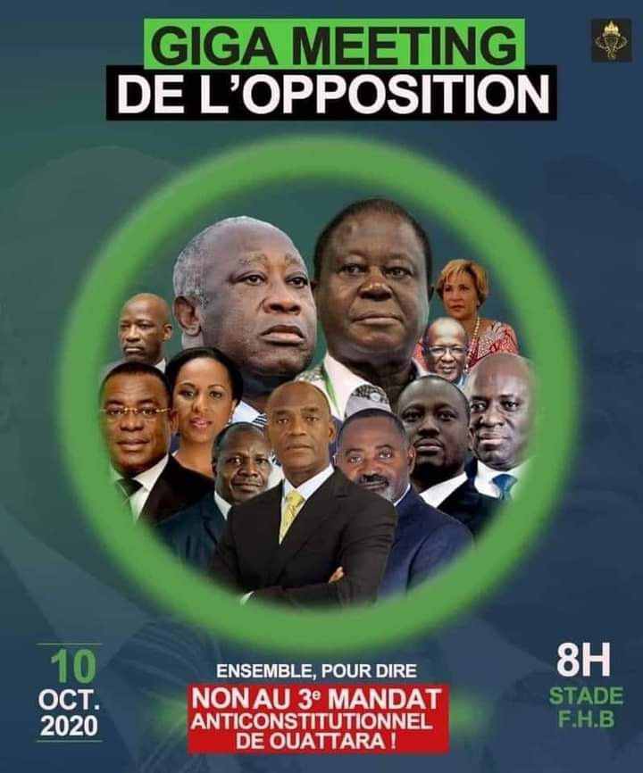 ‘@Informateur.info- Le samedi 10 octobre 2020, l’opposition ivoirienne entend organiser un giga meeting pour lancer effectivement ses activités de désobéissance civile.