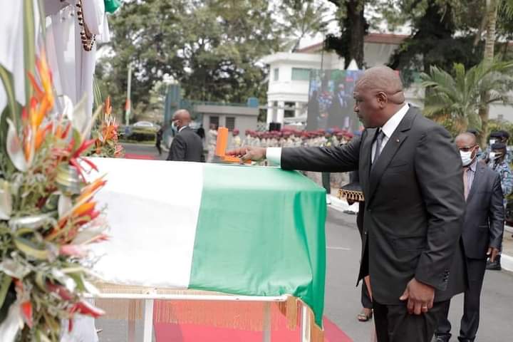 Outre les honneurs militaires, cette cérémonie a été marquée par le recueillement du Chef de l’Etat et de son épouse sur la dépouille, la distinction à titre posthume du disparu élévé au grade de Commandeur dans l’Ordre national par le Premier ministre, ministre de la défense, Hamed Bakayoko, la remise du Drapeau de l’Etat à veuve Sidiki Diakité par le Président Alassane Ouattara ainsi que des témoignages sur sa vie.
