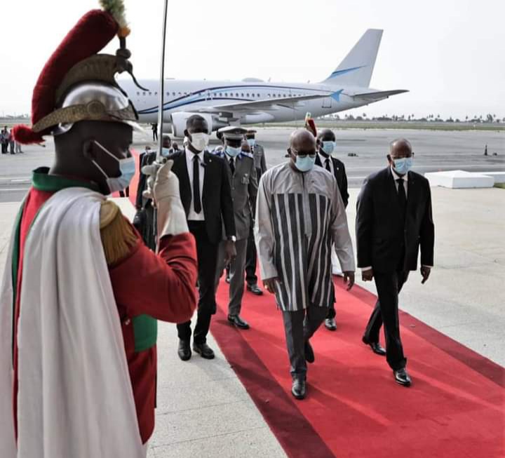Roch Marc Christian Kaboré a été accueilli à l’aéroport international Félix Houphouet-Boigny de Port-Bouët par le Secrétaire général de la présidence ivoirienne, Patrick Achi, Premier ministre par intérim.
