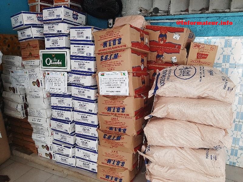 Ce don composé, entre autres, de 25 cartons de riz, 25 cartons d’huile, 25 sacs de Spaghettis, 15 cartons de lait et 10 cartons de datte a été réceptionné,le dimanche 10 mai 2020 à la mosquée Jahiwa d’Abobo Samaké, par le Cheikh Abdoul Aziz Sarba, guide suprême de la communauté burkinabè en Côte d’Ivoire.