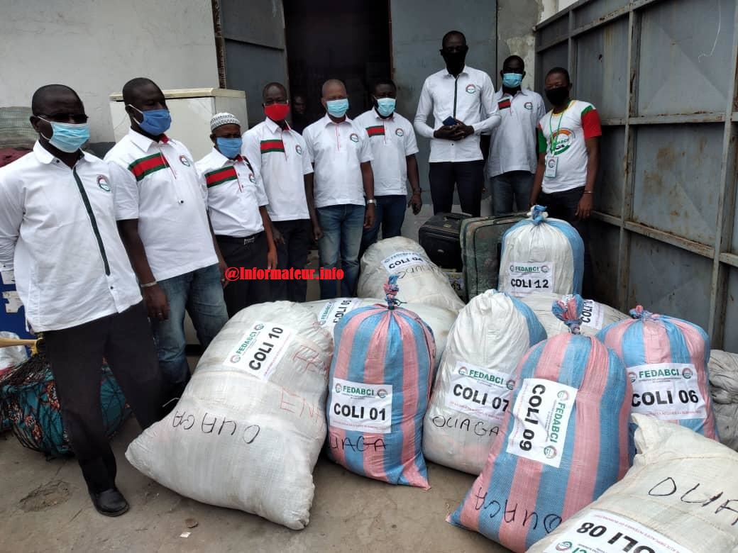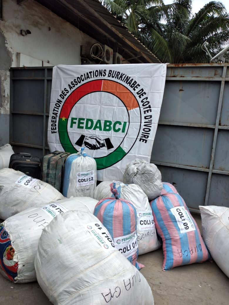 ‘@Informateur.info- La Fédération des associations burkinabè en Côte d’Ivoire (FEDABCI) a fait don d’une tonne de vêtements aux déplacés internes du Burkina Faso victimes du terrorisme. Ce sont au total quinze ballots d’habits pour hommes, femmes et enfants d’un poids global d’une tonne qui ont été embarqués, vendredi, dans une gare routière internationale de la place pour Ouagadougou, la capitale burkinabè, en présence de Sia Koudougou, président de la fédération donatrice et de plusieurs membres de son bureau.