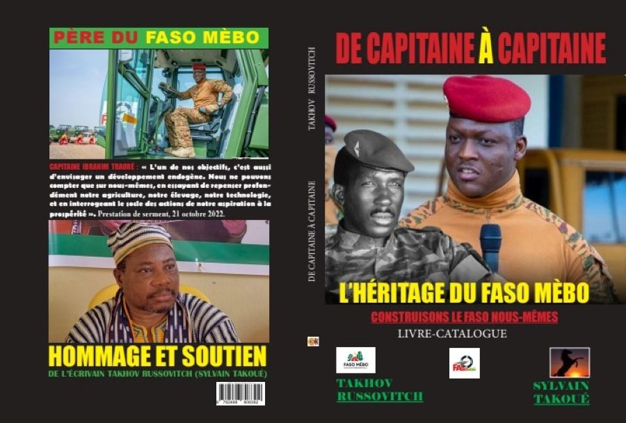 Cette œuvre de l’écrivain ivoirien Sylvain Takoué (qui l’a aussi signé de son autre nom d’auteur russophile Takhov Russovitch), tient ainsi à féliciter le Capitaine Ibrahim Traoré, Président du Burkina Faso, pour son exemplaire initiative du Faso Mèbo : « Au moment où notre époque actuelle continue d’être péjorativement marquée par la main tendue de la plupart de nos dirigeants africains à l’aide publique extérieure qui siphonne en réalité les économies du continent, le Président du Burkina Faso se démarque radicalement de cet alignement. Il fait preuve de cette audace politique si rare aujourd’hui en continuant dans son pays la Révolution Sankara commencée en 1983 », explique l’écrivain. Avant de renchérir : « Avec son initiative présidentielle du Faso Mèbo, tous les Burkinabè sont appelés à se réapproprier leur pays et sa valeur cardinale d’intégrité morale par le dur labeur de construction infrastructurelle de la patrie. Nous voyons l’engouement national que cet appel suscite, et c’est pourquoi, il nous fallait amplifier cet engouement patriotique par un livre-catalogue que nous présenterons à l’Afrique ».