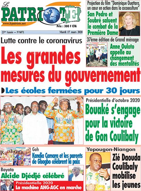 Pour lutter contre la propagation du coronavirus, écrit Le Sursaut, ‘’Ouattara ferme tous les établissements d’enseignement préscolaire, primaire, secondaire et supérieur’’. Pour Le Matin, ‘’la Côte d’Ivoire déclare la guerre au coronavirus’’ et explique ‘’pourquoi il ne faut pas céder à la panique’’. Ce qui fait dire à Notre Voie que ‘’la Côte d’Ivoire se réveille enfin’’ pour la lutte contre cette pandémie. ‘’L’Etat décide enfin !’’, renchérit Générations Nouvelles.