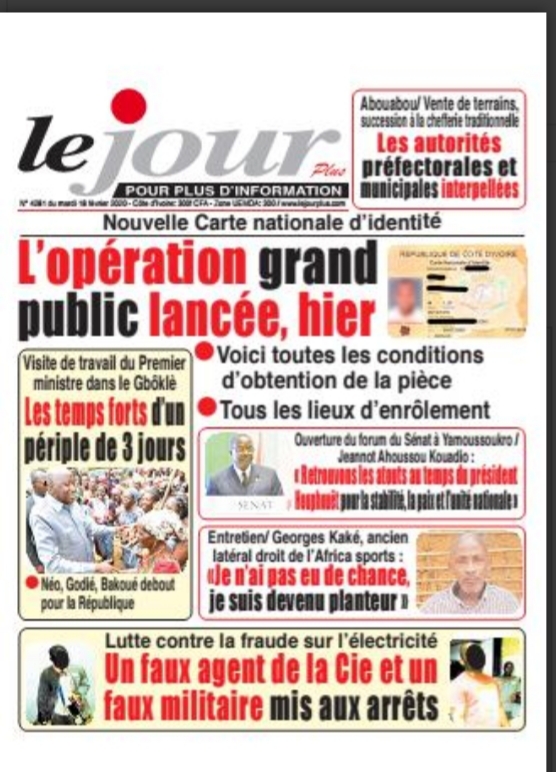 A ce propos, Fraternité Matin précise que ‘’l’opération vise 11 millions de demandeurs’’. ‘’L’opération grand public lancée, hier’’, jubile Le Jour Plus qui croit savoir ‘’toutes les conditions d’obtention de la pièce et les lieux d’enrôlement’’. De son côté, L’Inter explique ‘’ comment va se dérouler l’opération pour les CNI’’.