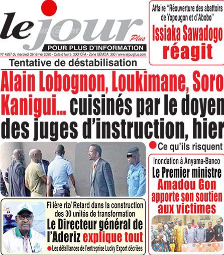 Selon le Quotidien d’Abidjan, « le régime de Ouattara fait un semblant de procès aux pro-Soro » face aux « pressions » de toutes parts. Tentative de déstabilisation : « Alain Lobignon, Loukimane, Soro Kanigui…cuisinés par le doyen des juges d’instruction, hier », titre Le Jour Plus qui croit savoir « ce qu’ils risquent ». « Les détenus pro-Soro devant le doyen des juges, hier », renchérit Le Nouveau Réveil.