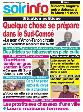 Situation sociopolitique : ‘’quelque chose se prépare dans le Sud-Comoé’’ où ‘’le nom d’Amon-Tanoh circule’’, révèle Soir Info.