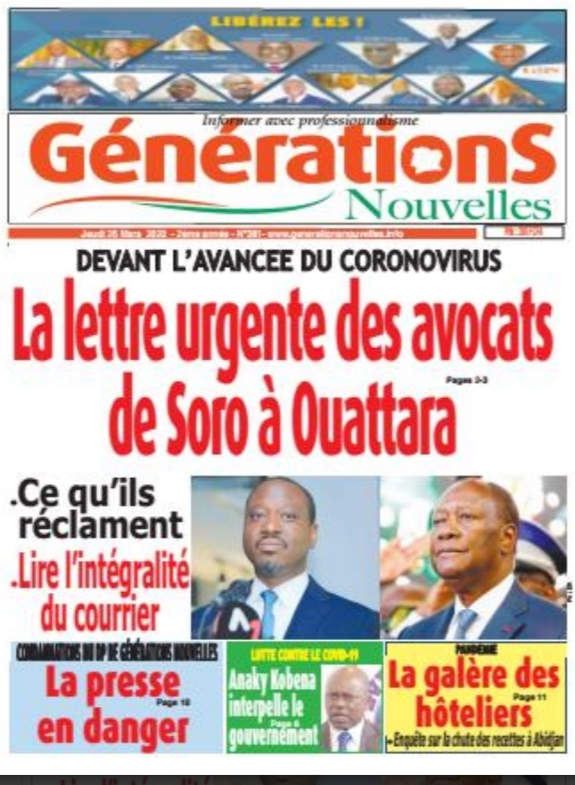 ‘@Informateur. Info– La justice ivoirienne a condamné le mardi 25 mars 2020 le quotidien Générations nouvelles à une amende de 5 millions de Francs CFA.