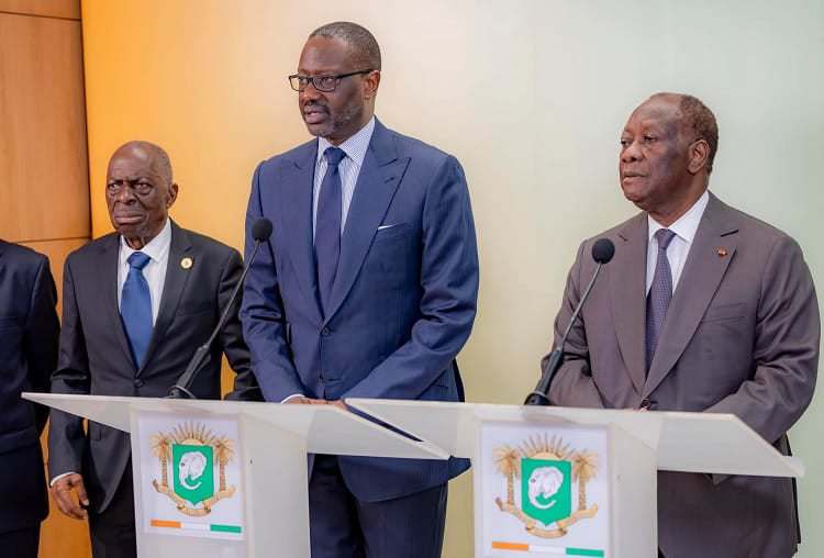 «Le président honoraire Cowpli Bony est venu me présenter le président du Pdci qui a été élu il y a quelques semaines, en remplacement de mon frère aîné le président Henri Konan Bédié (…). C’est un moment important pour la Côte d’Ivoire parce que comme beaucoup d’entre vous, le savent, moi-même j’ai été N° 2 du Pdci quand j’étais premier ministre de 1990 à 1993», a déclaré la presse le président Alassane Ouattara.