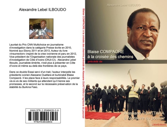Ce livre que voici porte un titre, je dirais même un double titre qui interpelle d’emblée et retient l’attention. «Blaise Compaoré à la croisée des chemins» précédé de «Alassane Ouattara à l’épreuve du pouvoir ». Il est de l’auteur Alexandre Lebel Ilboudo, lequel n’est pas à sa première publication puisqu’il a déjà signé «Insurrection», un recueil de nouvelles aux Editions Sésame en 2012. «Blaise Compaoré à la croisée des chemins» précédé de «Alassane Ouattara à l’épreuve du pouvoir», comporte cent pages. Il a été édité par LEBELEDITIONS, une structure éditoriale qui a surement beaucoup à voir avec l’auteur.
