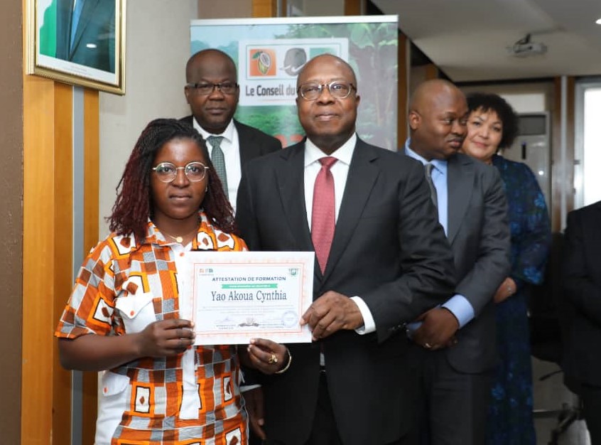 @Informateur- Ce mercredi 22 mai 2024, le Directeur Général du Conseil du Café-Cacao a procédé à la cérémonie de remise d’attestations aux agents de la Société Coopérative Ivoirienne de Négoce des Produits Agricoles (SCINPA), à la grande salle de réunion du 23ème étage de l’immeuble de la CAISTAB.
